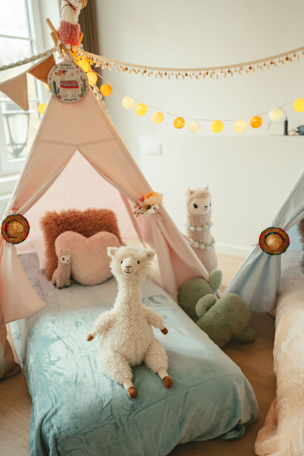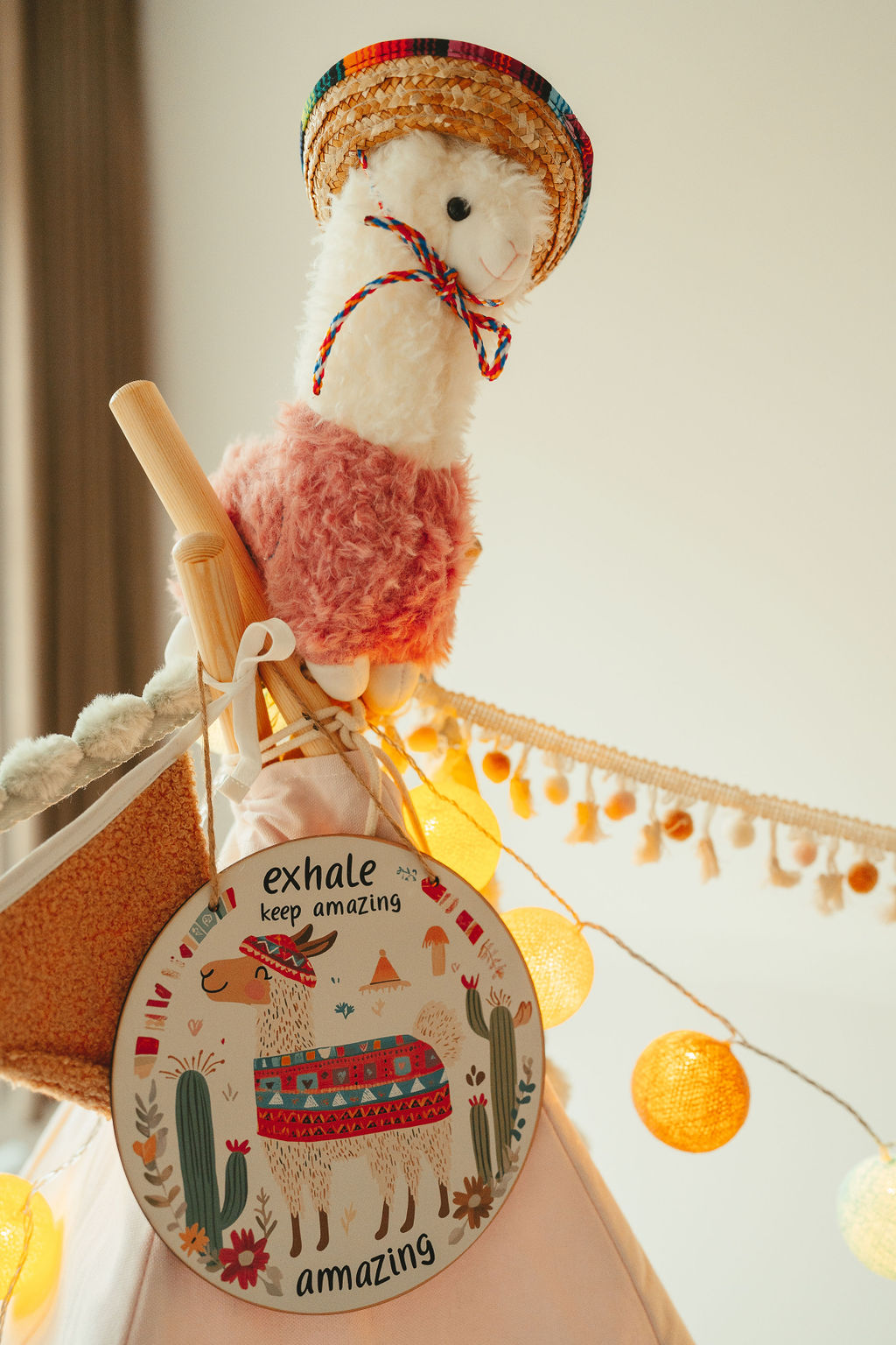 Stap binnen in de magische wereld van alpaca’s met een vleugje Zuid-Amerikaanse charme. Met zachte kleuren, schattige alpaca’s en een unieke sfeer waan je je in een serene oase vol avontuur en knusheid. Perfect voor avonturiers die dol zijn op dieren en dromen van verre reizen.