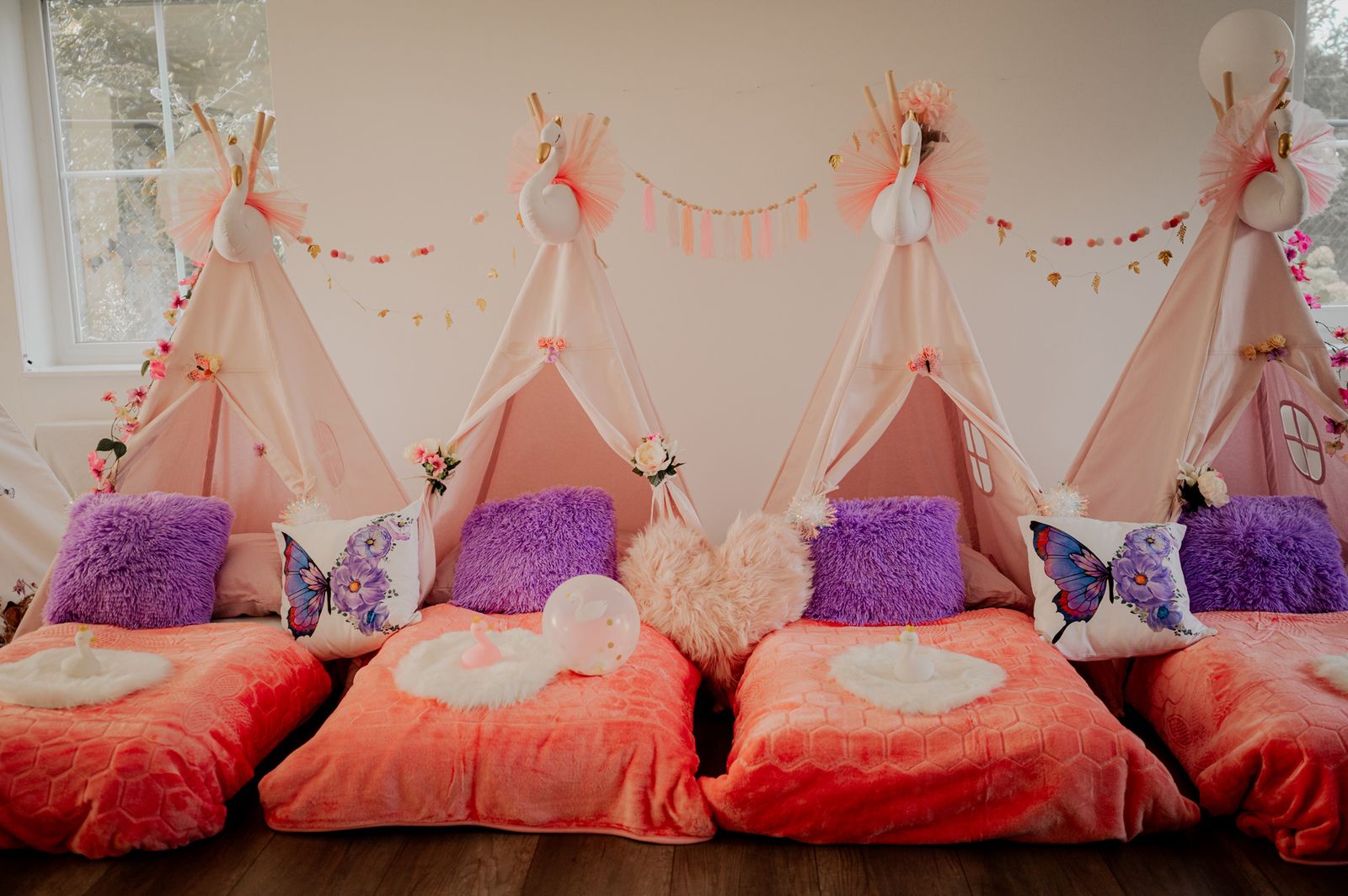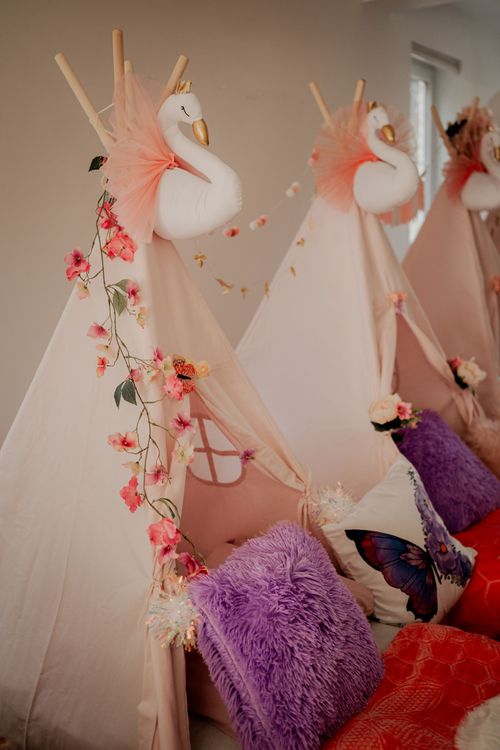 Voor dit slaapfeestje is geen fantasie nodig. Droom heerlijk weg in je tipi, omringd door zachte kussens en plaids. Geniet van een ontspannen en comfortabele nacht vol gezelligheid!