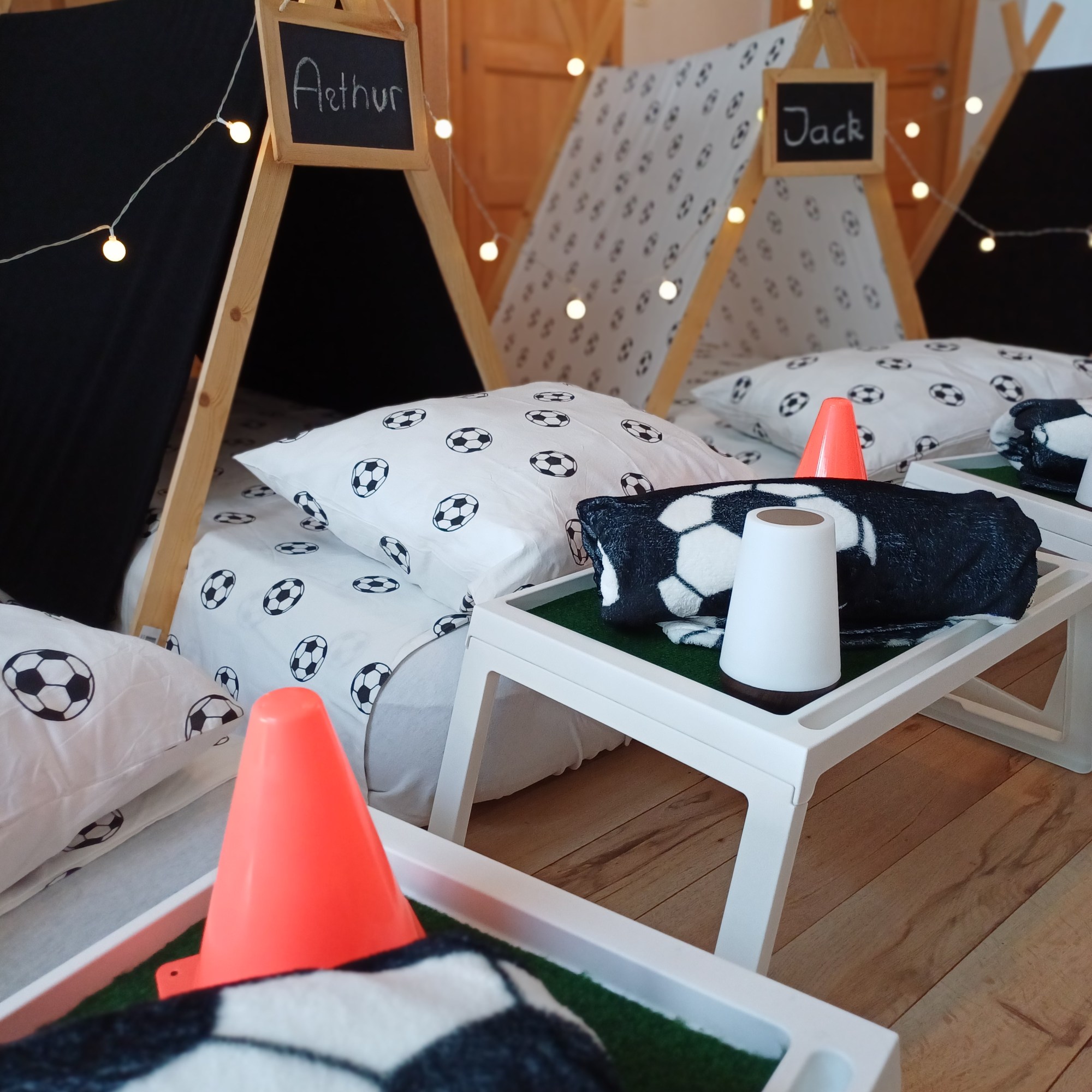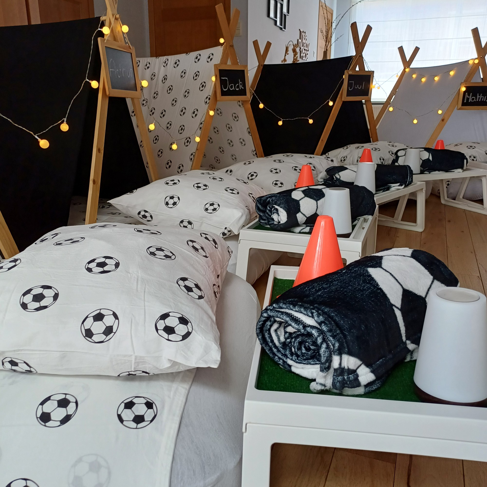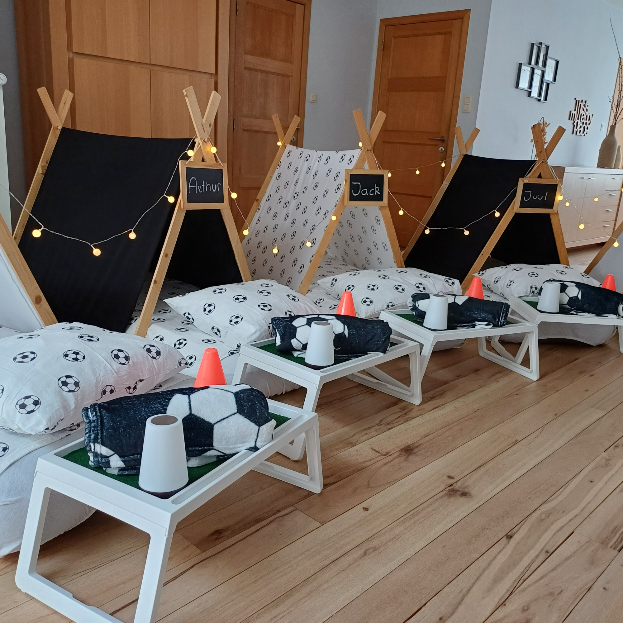 - Tipi tenten: zwarte, witte en 1 voetbaltent voor de jarige